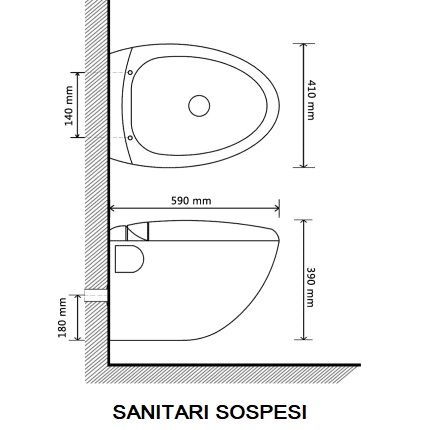- Bidet sospeso: dimensioni 59x41x36 cm