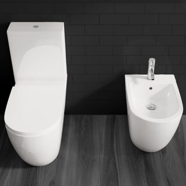 -23%Coppia di sanitari con water monoblocco, copriwater Softclose e bidet. Possibilità di scelta tra versione con scarico a pavimento o con scarico a muro.