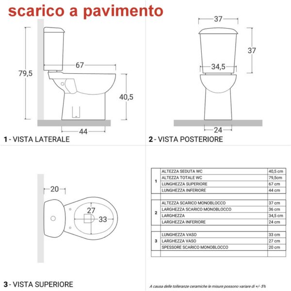 wc da 34,5xP67 cm (altezza totale 79,5 cm; altezza seduta 40,5 cm)