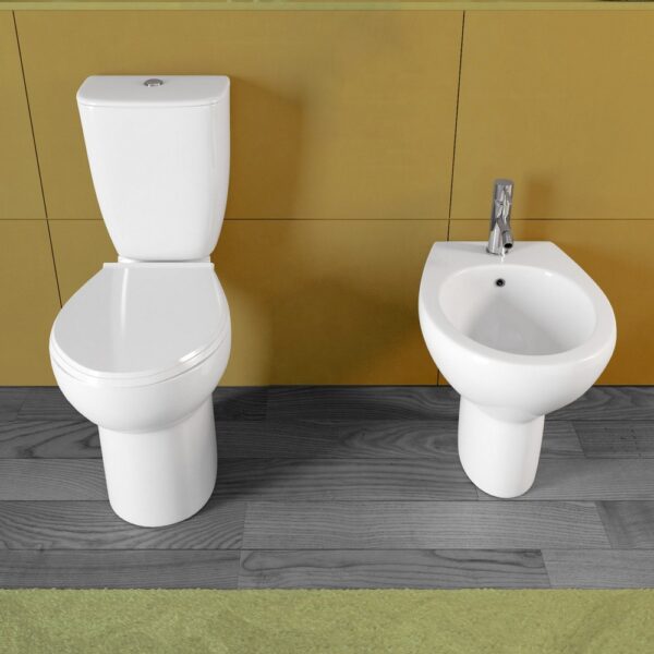 -42%Coppia di sanitari con water monoblocco, copriwater Softclose e bidet. Possibilità di scelta tra versione con scarico a pavimento o con scarico a muro.