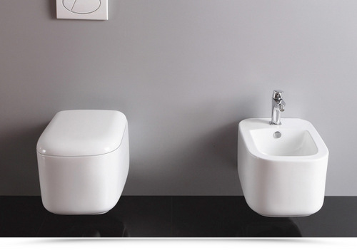 Sanitari Viola sospesi in ceramica bidet e wc con copriwater chiusura soft close
