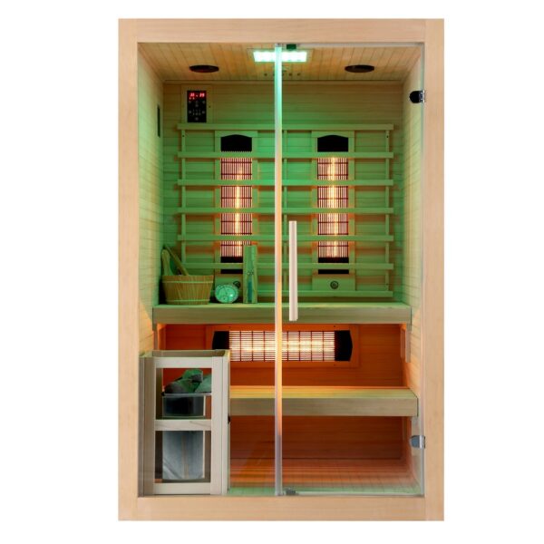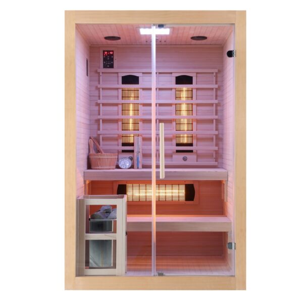 Sauna combinata Infrarossi e Finlandese 130×120 con irradianti Full SPECTRUM e stufa SN057