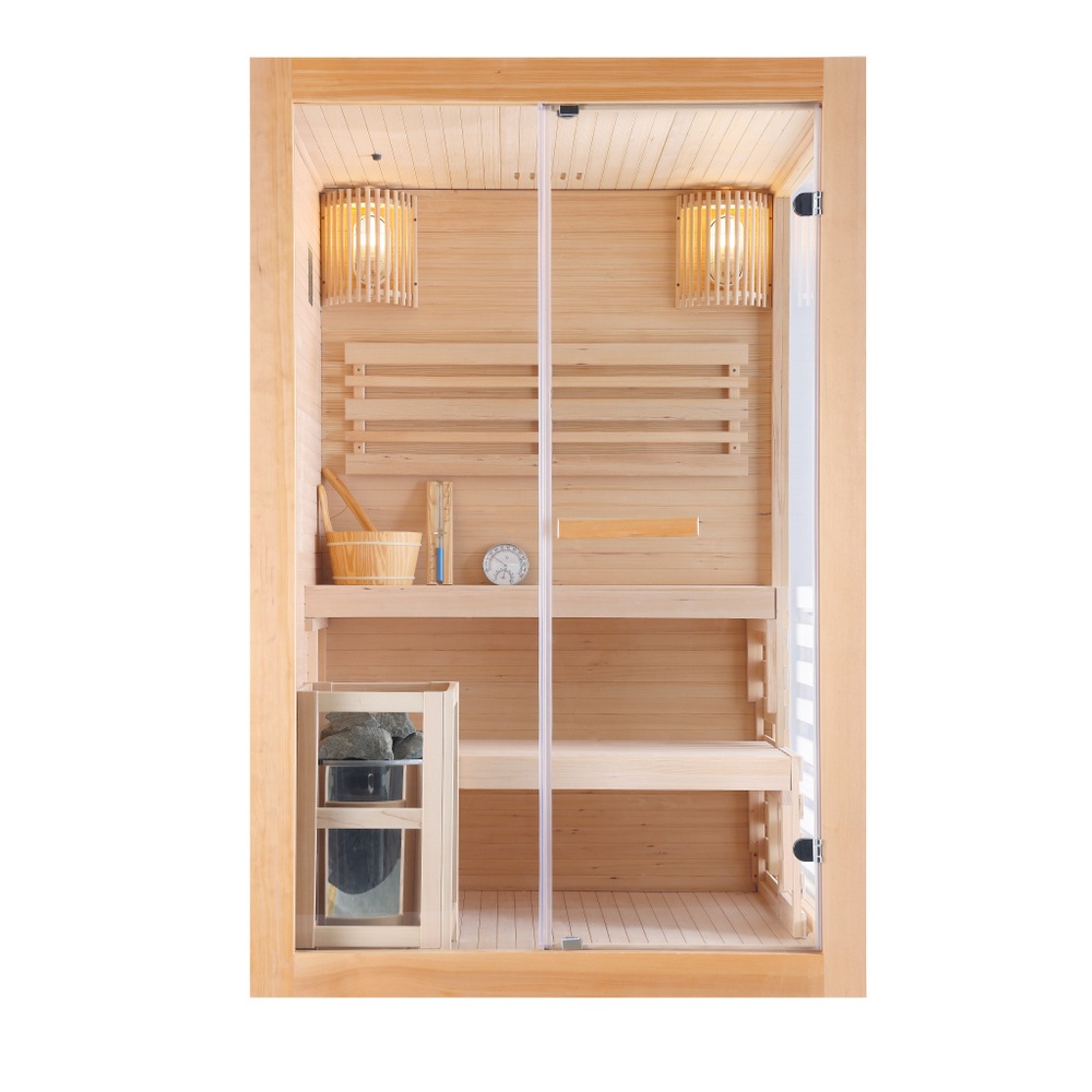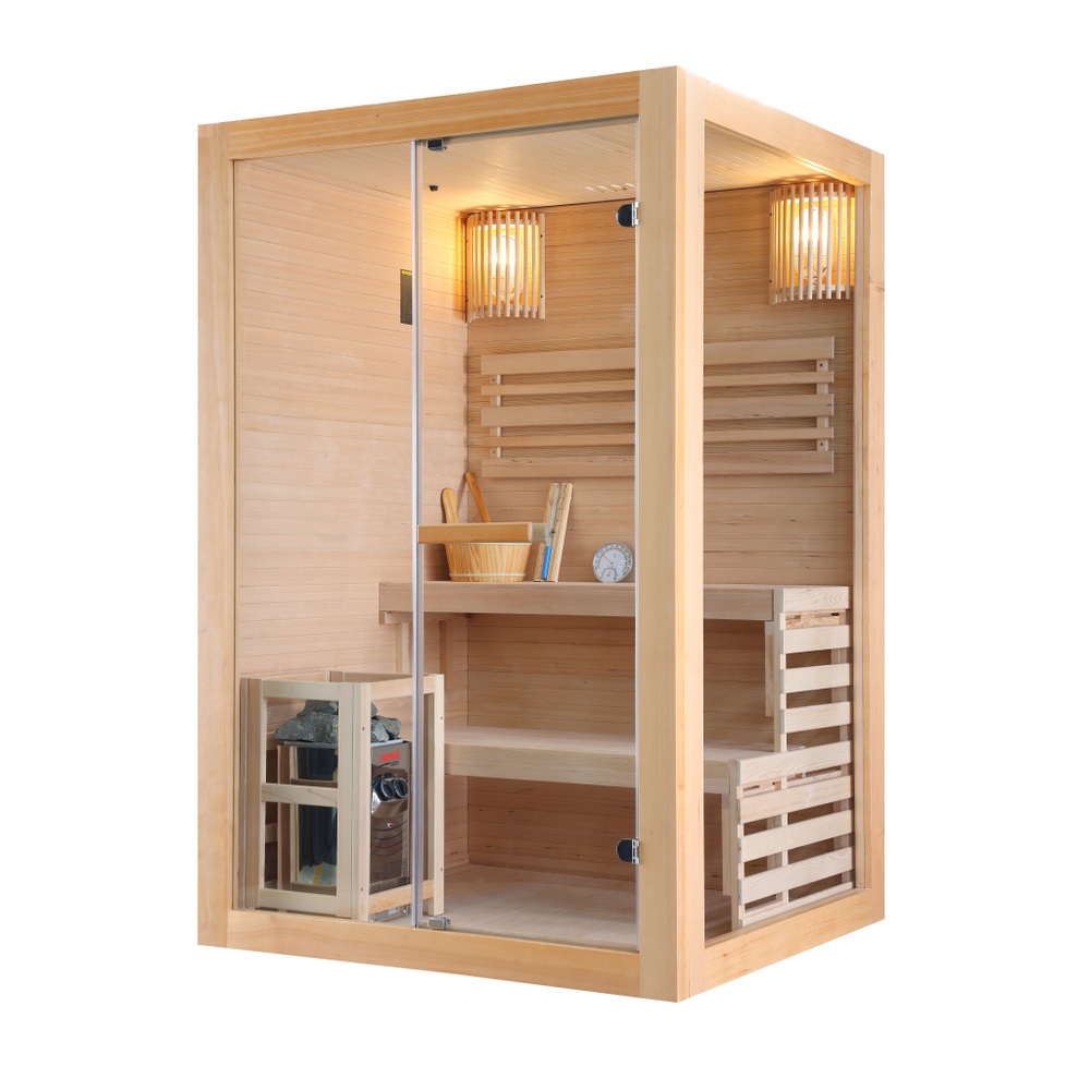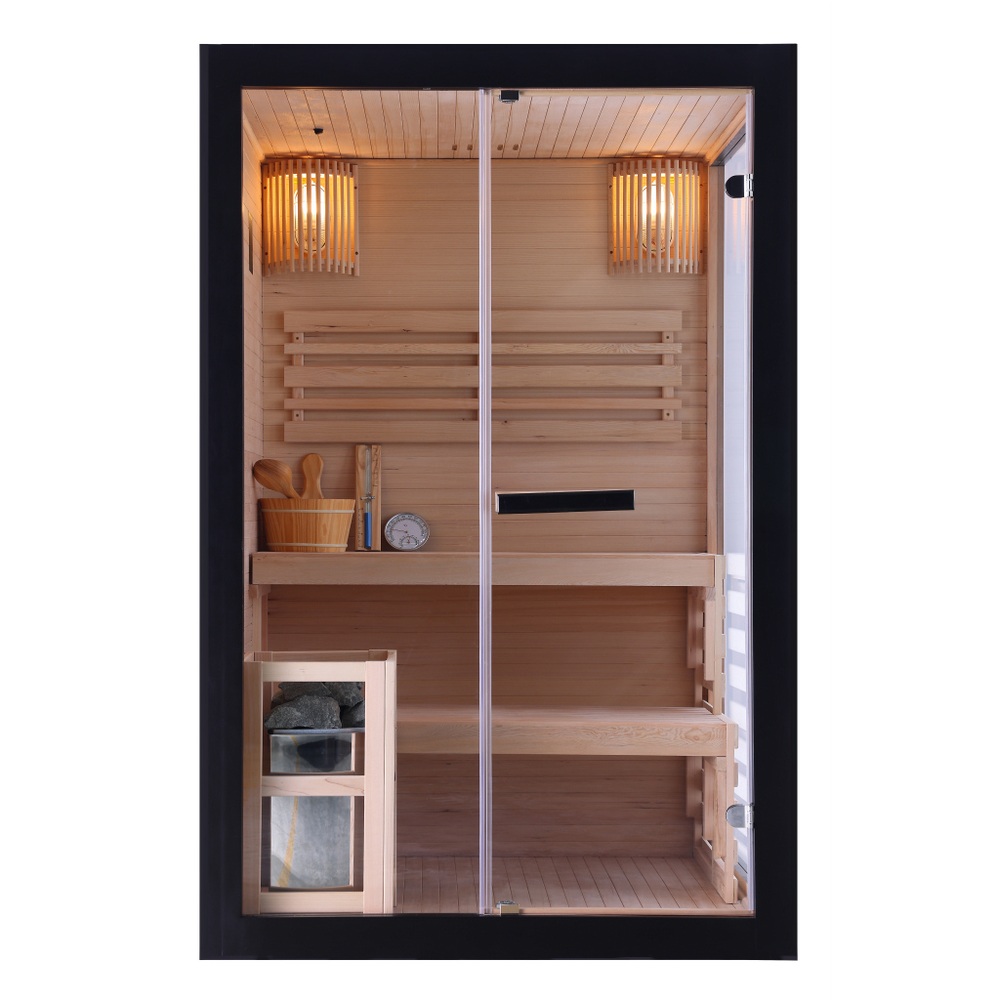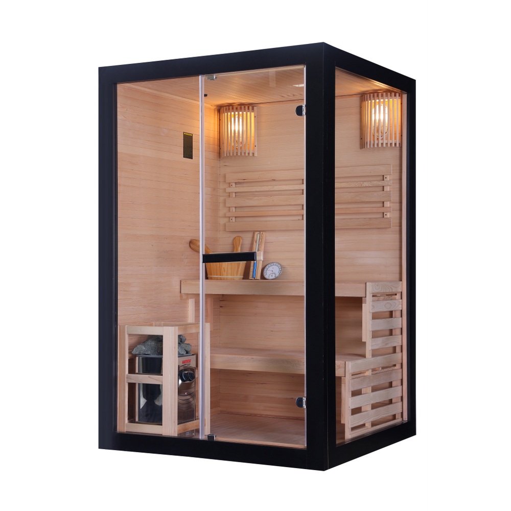 -11%Moderna sauna con struttura esterna disponibile in due colori, naturale o nero, adatta per 2 persone. Completa di stufa con accessori (quali secchiello, mestolo e pietre), termometro, clessidra, illuminazione interna e 2 panche.