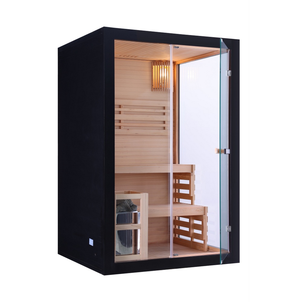 Sauna finlandese 130×120 cm in legno nero o naturale con stufa Harvia SN084