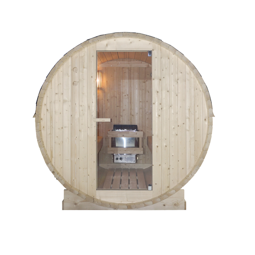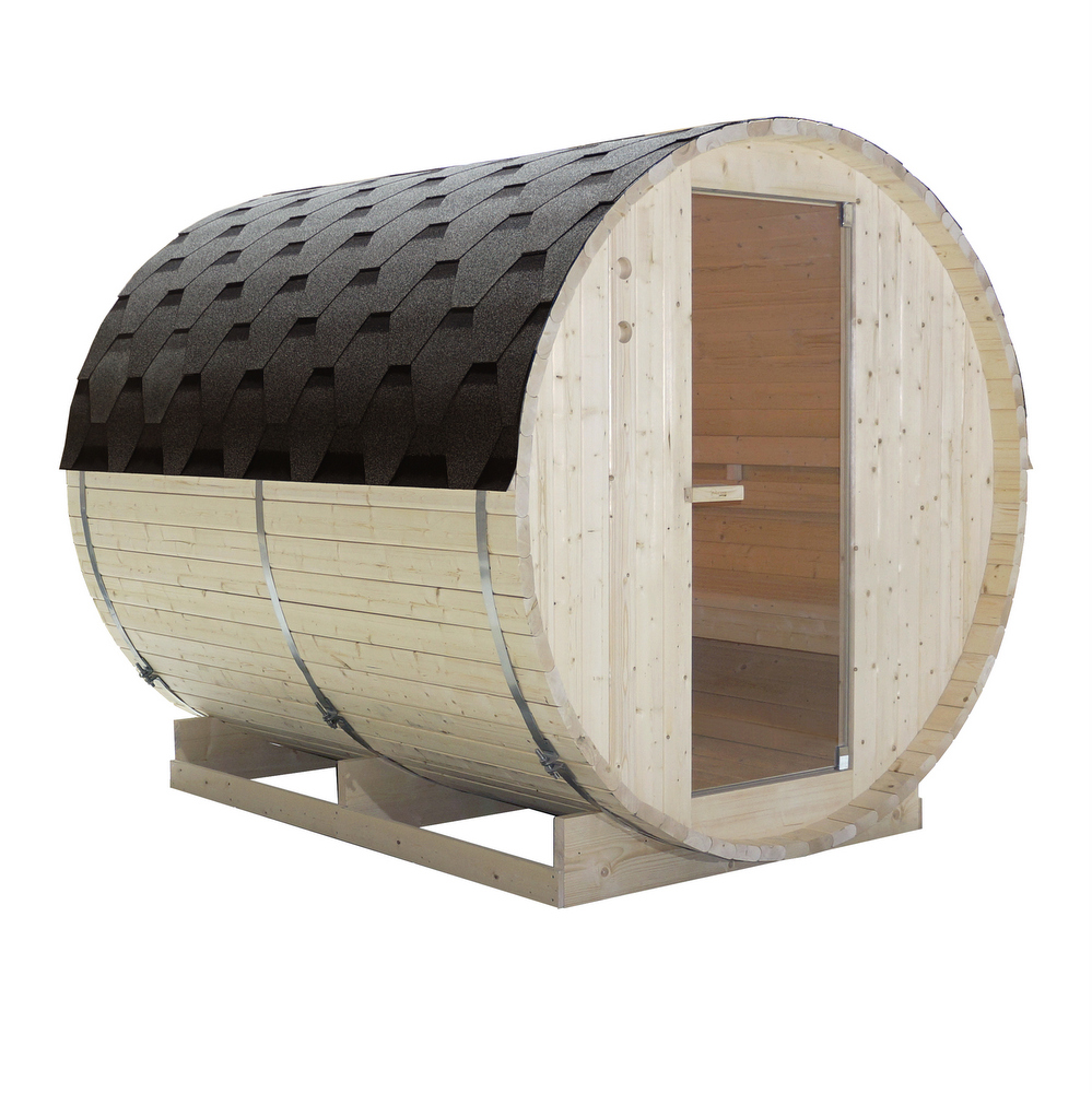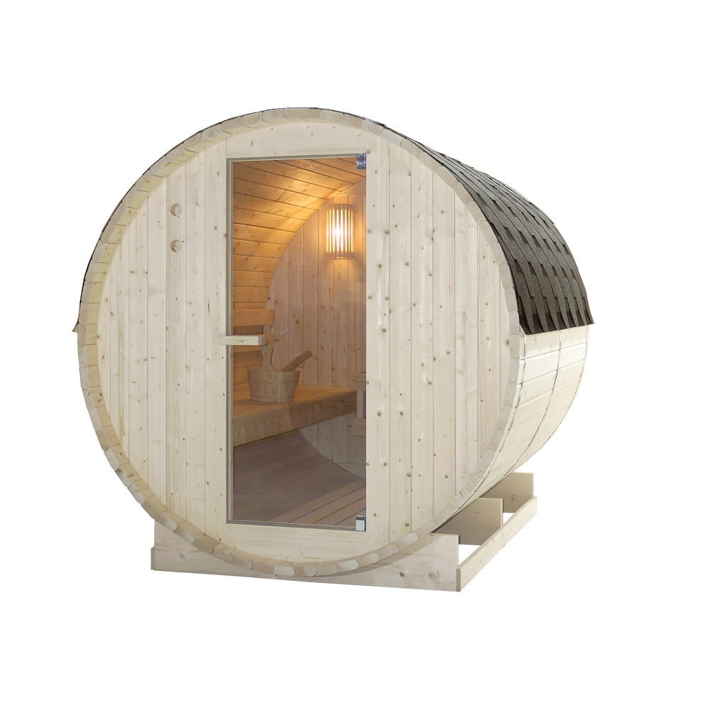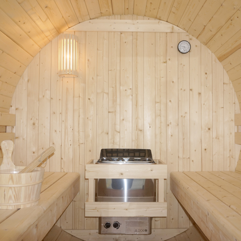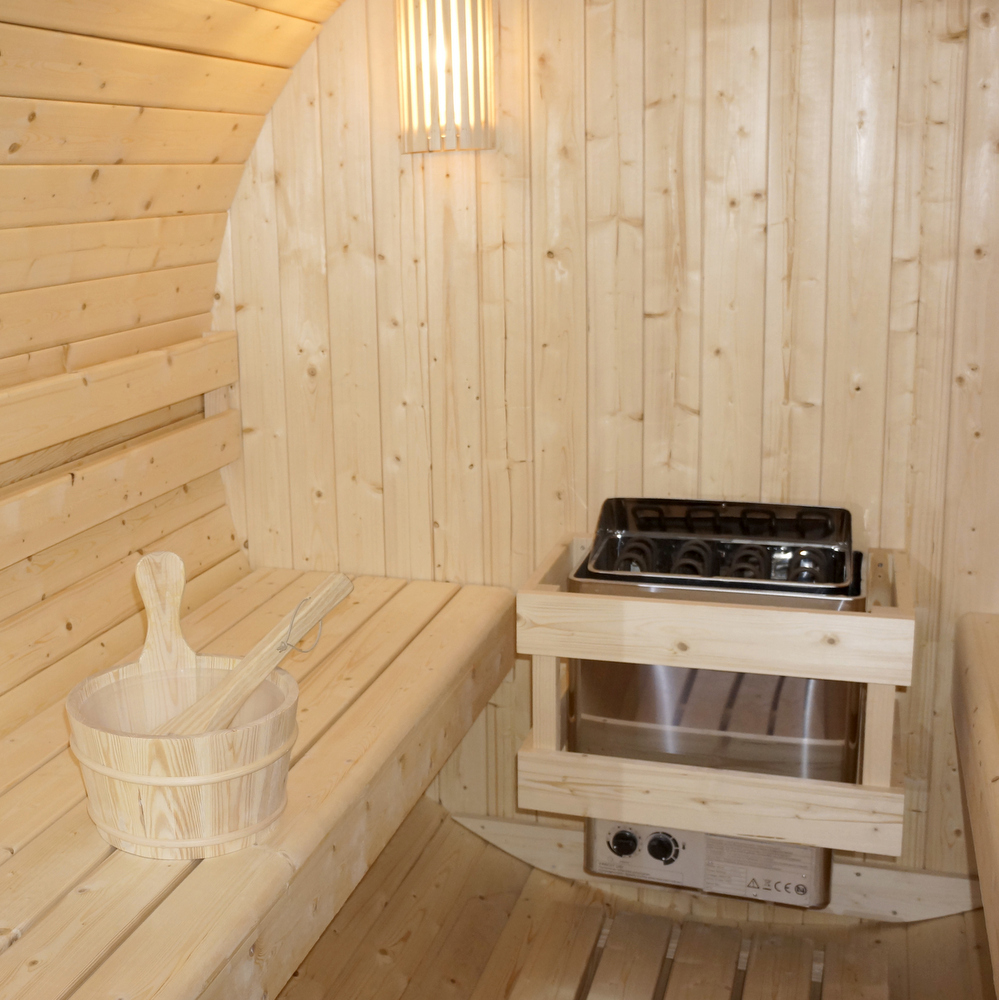 -23%Sauna finlandese, con struttura a forma di botte, adatta per 6 persone. Realizzata in legno di abete e comprensiva di: stufa con pietre, termometro, clessidra e secchiello con mestolo.