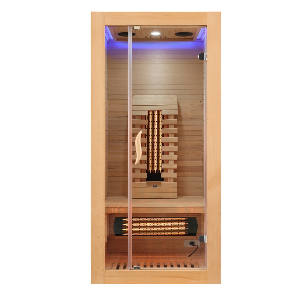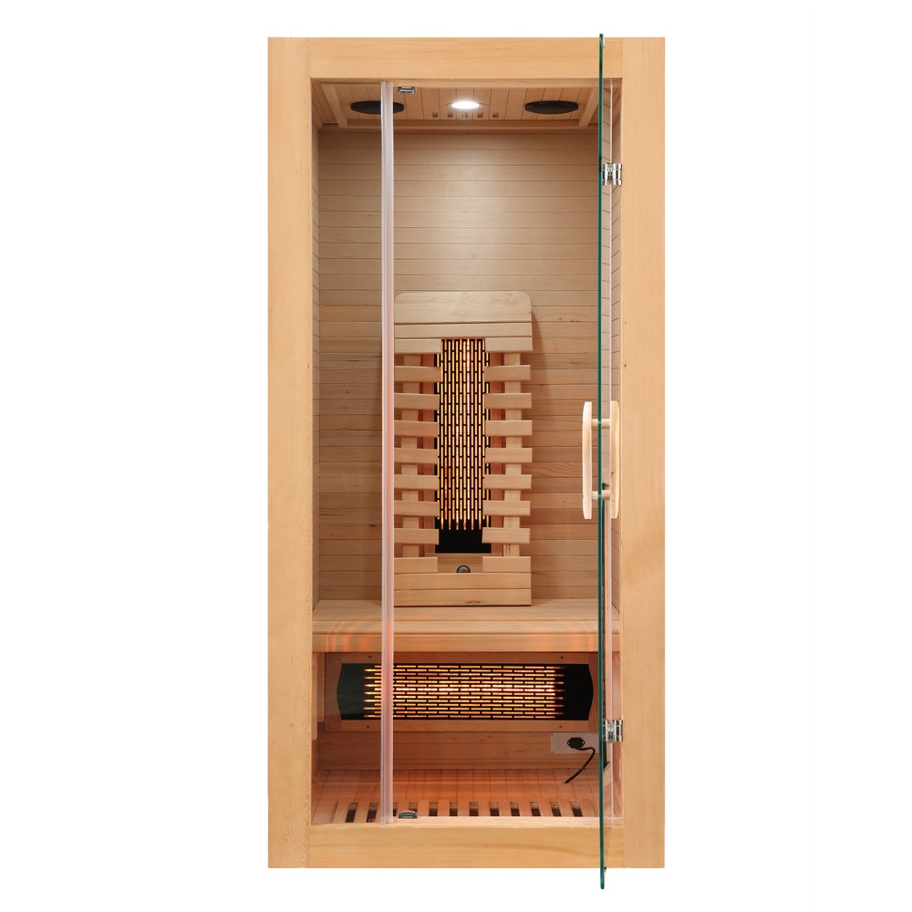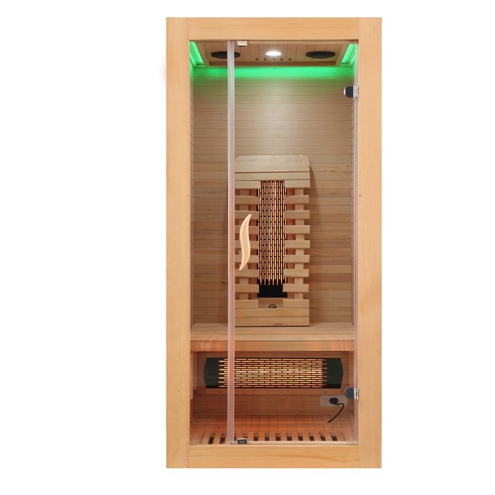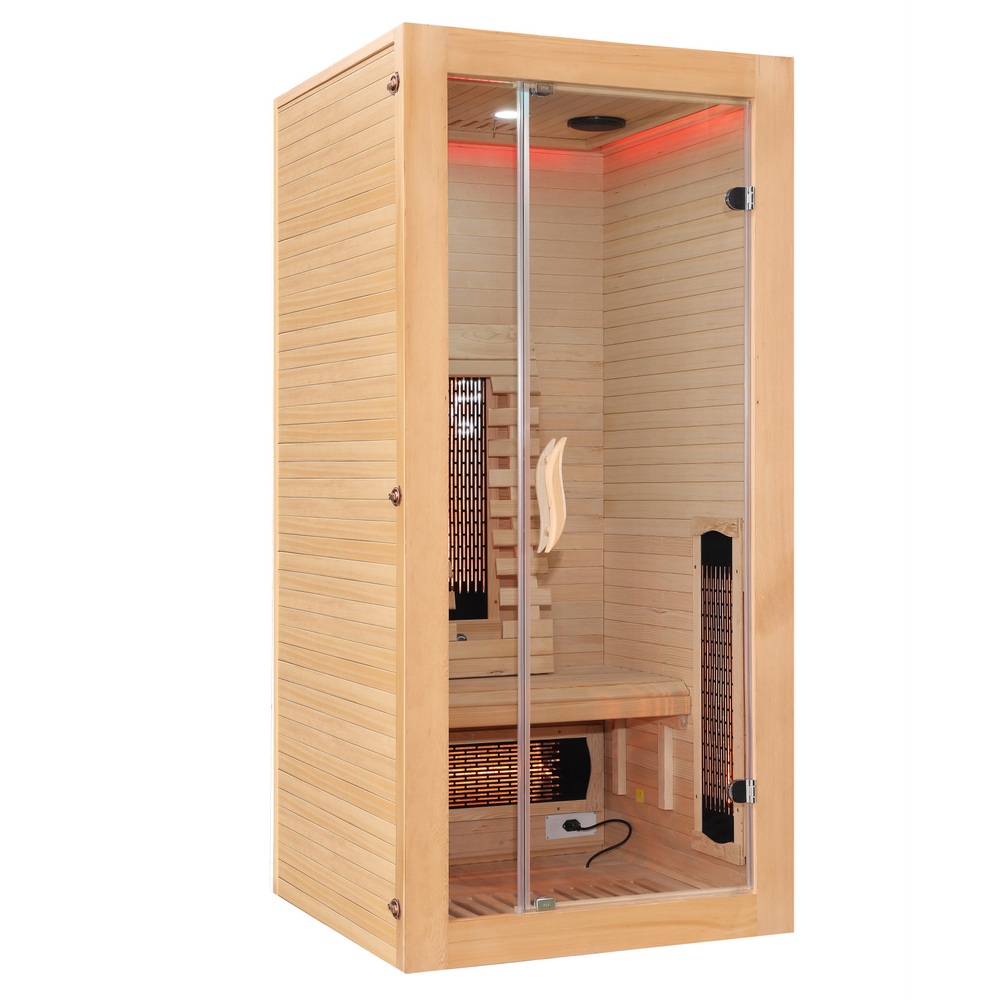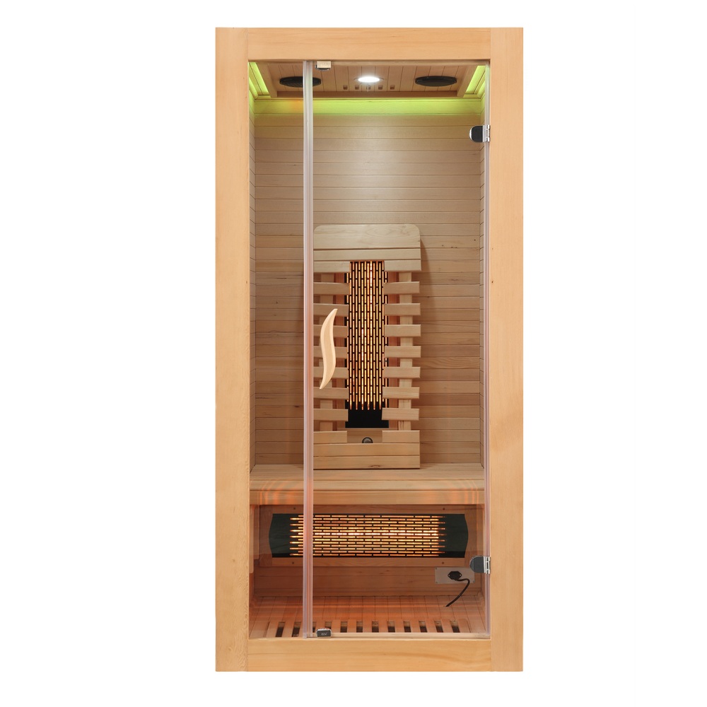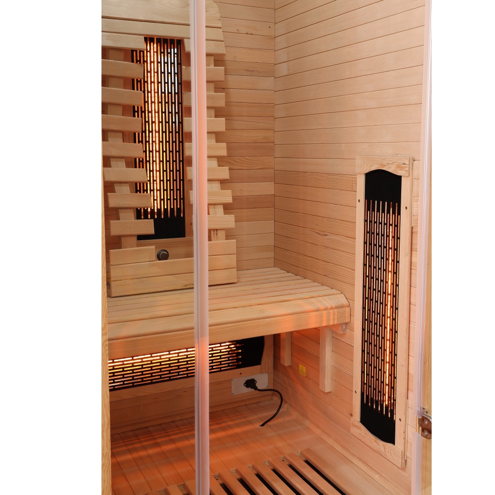 -46%Sauna in legno hemlock dotata di 6 irradiatori infrarossi full spectrum (raggi A, B e C) e di 1 irradiatore in carbonio.