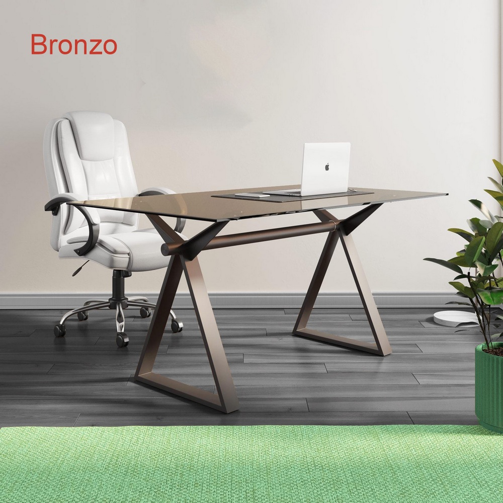 Tavolo scrivania da 150 o 180 cm con gambe in acciaio e top in vetro verde bronzo o nero TL078
