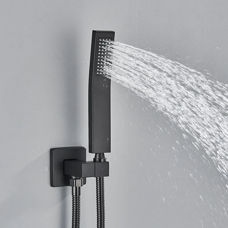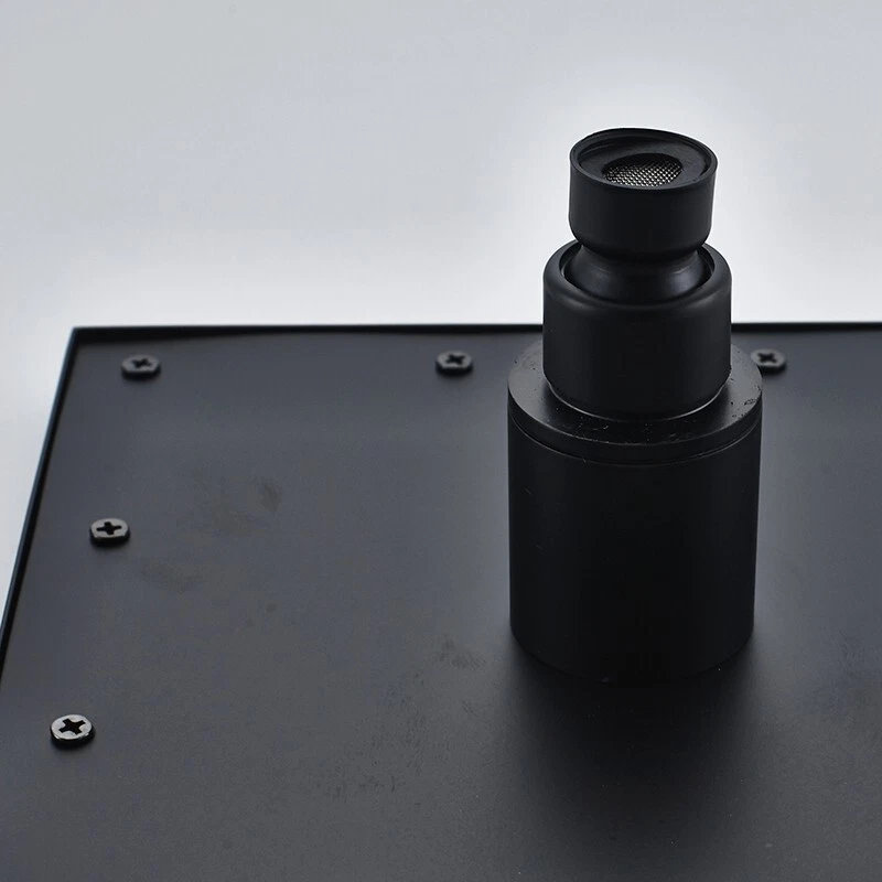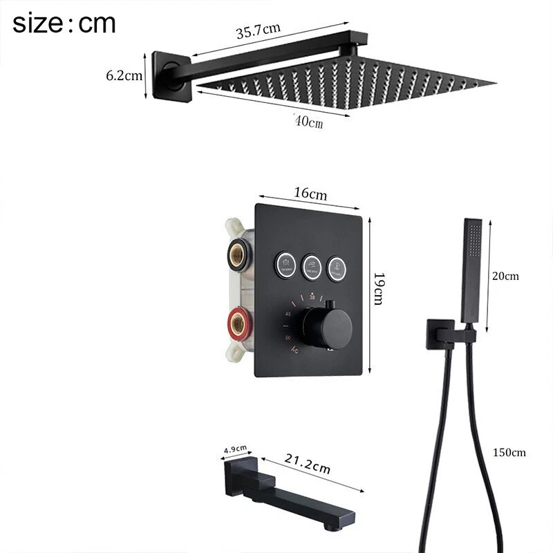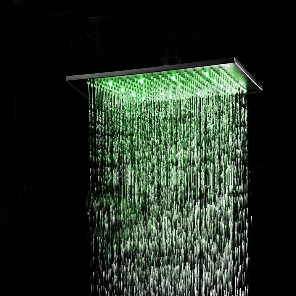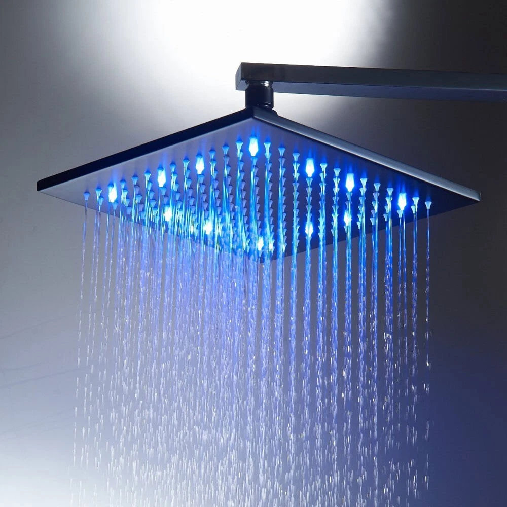 -51%Kit completo di rubinetteria per doccia realizzato in ottone nero. Composto da: soffione con braccio per montaggio a parete e luci led, doccetta laterale con supporto a muro e tubo flessibile, miscelatore termostatico, deviatore a pulsanti, rubinetto girevole per vasca.
