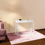 Tavolo-consolle bianco struttura in metallo e top in legno allungabile da 50 a 275 cm TL070
