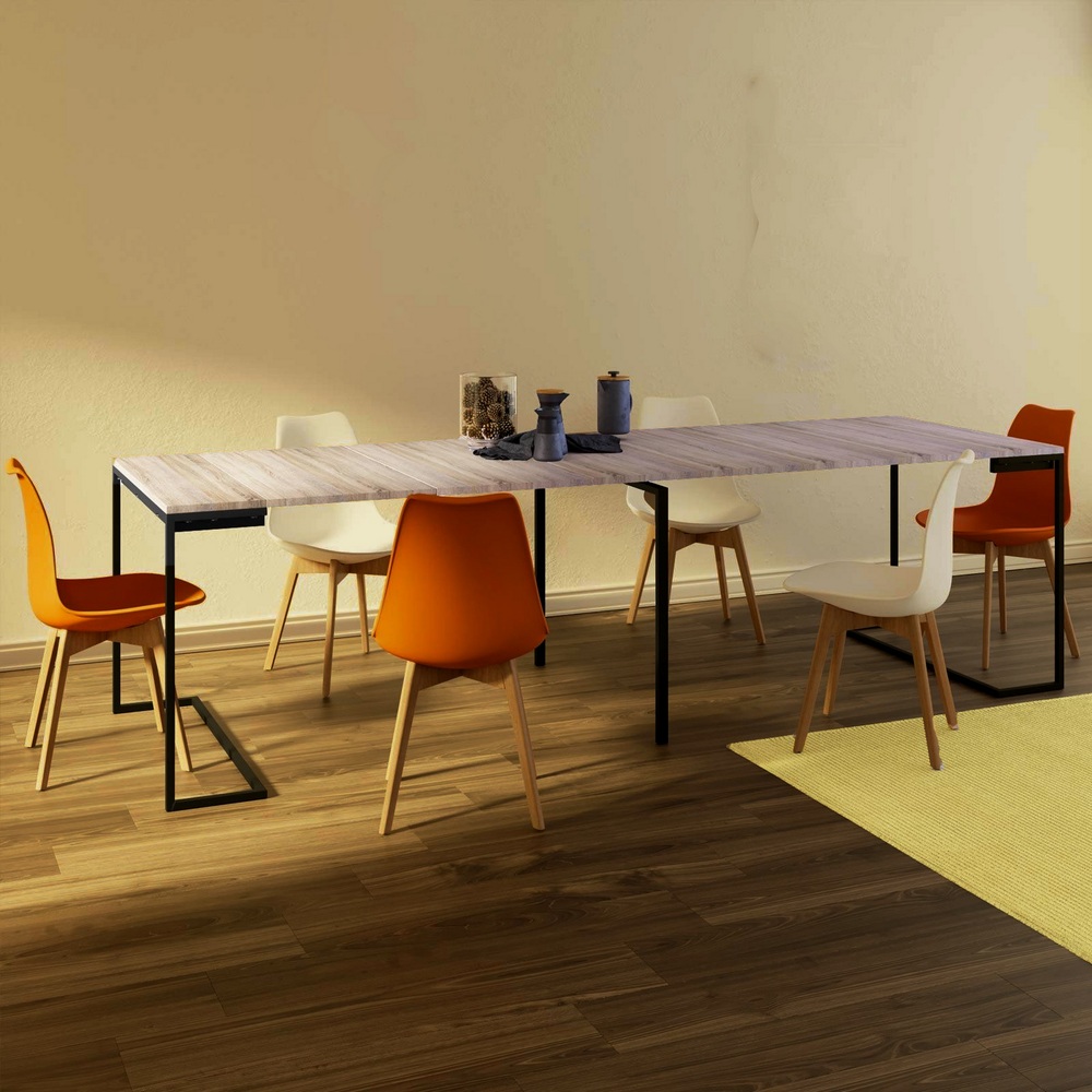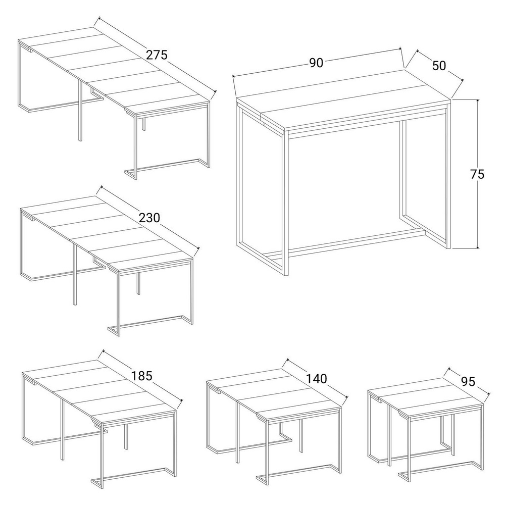 Tavolo-consolle con gambe a L in metallo e piano in legno allungabile da 50 a 275 cm TL063