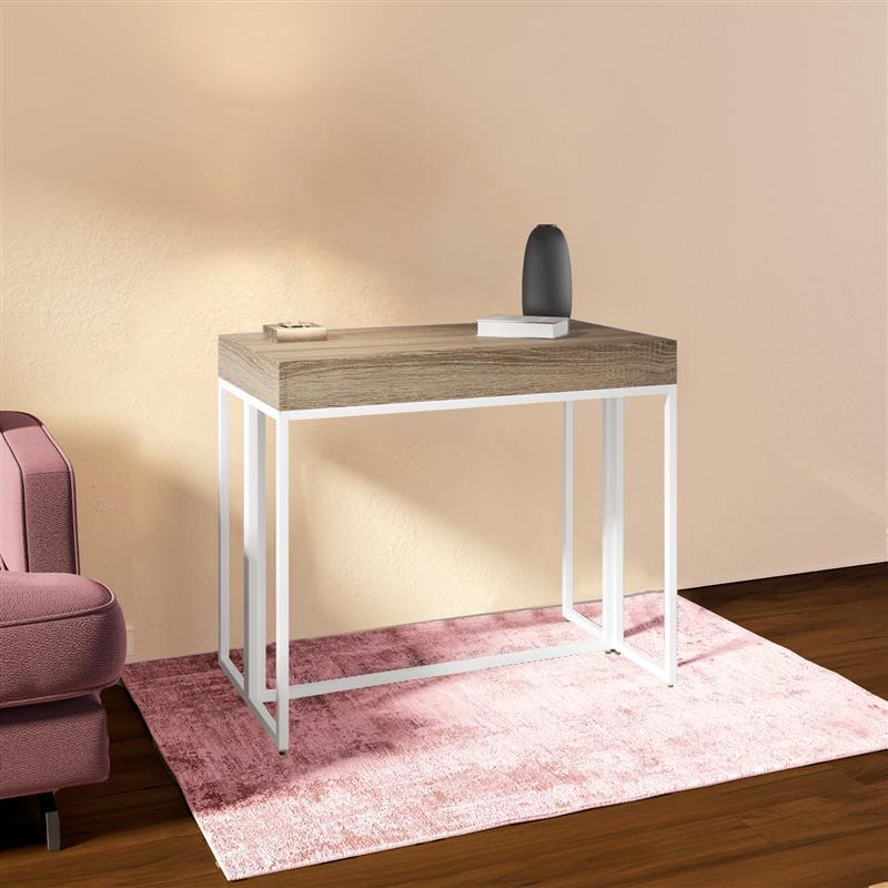 Tavolo-consolle con piano in legno e gambe in metallo bianco allungabile da 50 a 185 cm TL065