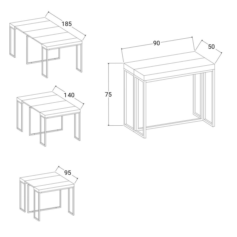 Tavolo-consolle da 50×90 cm trasformabile nelle seguenti configurazioni: