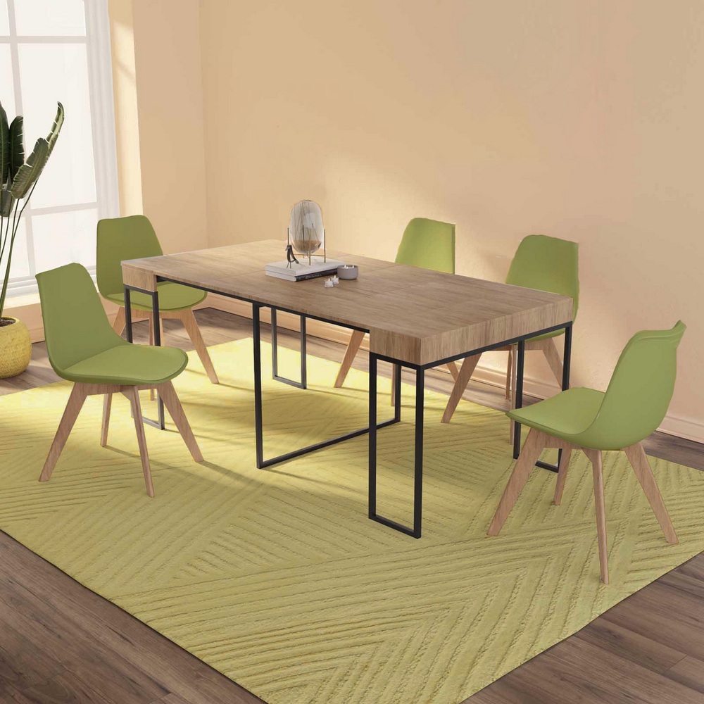 -24%Consolle trasformabile in tavolo da 4-6-8 posti grazie alle 3 allunghe in dotazione, da 45 cm ciascuna. La struttura è realizzata in metallo nero, mentre il piano è in legno mdf.