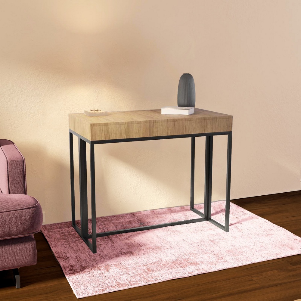 Tavolo-consolle estensibile da 50 a 185 cm con piano in legno e struttura in metallo nero TL064