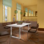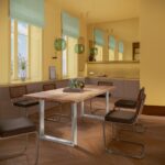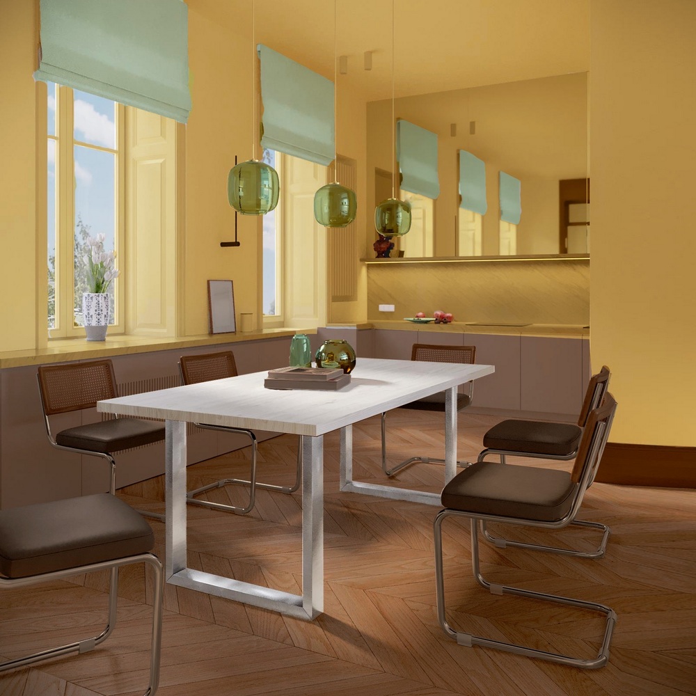 -29%Tavolo da pranzo disponibile con piano in legno a scelta tra i colori rovere bianco, rovere gold o rovere deciso. Le gambe ad “U” sono in metallo cromato, con spessore 5×5 oppure 8×4 cm.