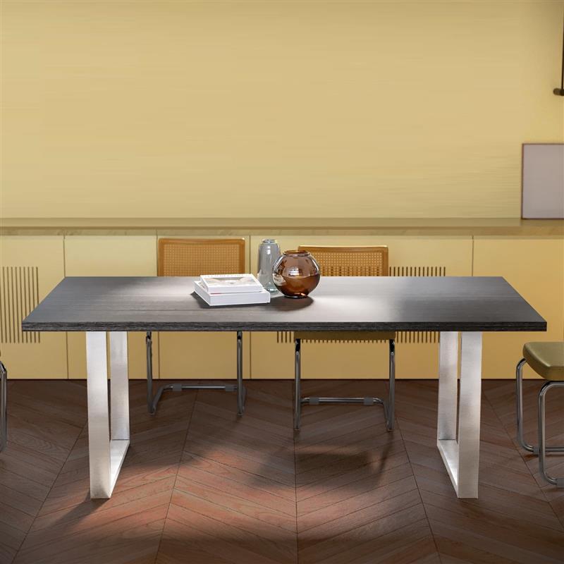 Tavolo da pranzo 200×100 cm gambe cromate 5×5 o 8×4 piano in rovere 4 colori TL076
