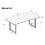 Altezza totale tavolo gambe 5×5: 75,8 cm