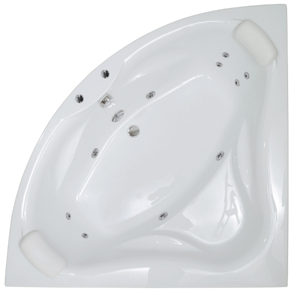 Vasca Idromassaggio 140×140 o 150×150 angolare con poggia testa bianchi, 10 getti.