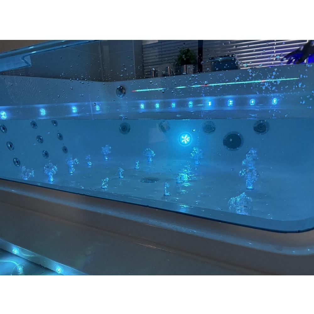 -24%Vasca idromassaggio full optional, dotata di doppia pompa airpool e whirlpool per un totale di 50 getti: 20 getti ad aria retroilluminati (air-led) e 30 getti ad acqua. Le sue funzioni includono inoltre il collegamento bluetooth, la cromoterapia ed il riscaldatore