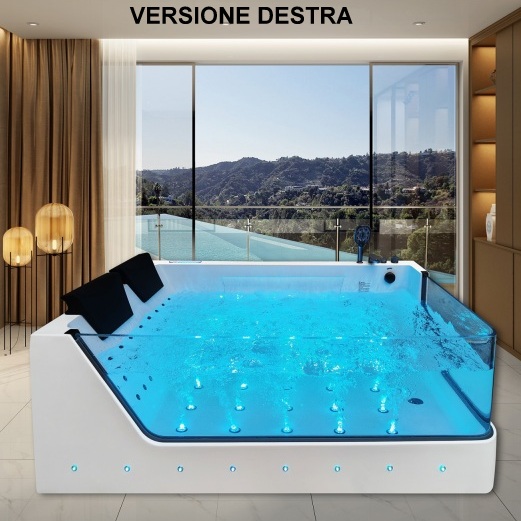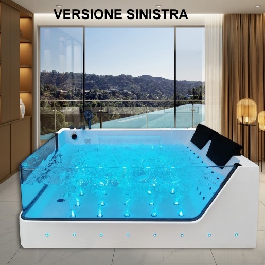 Vasca idromassaggio 180×110 cm destra o sinistra 50 getti cromoterapia e bluetooth VS156